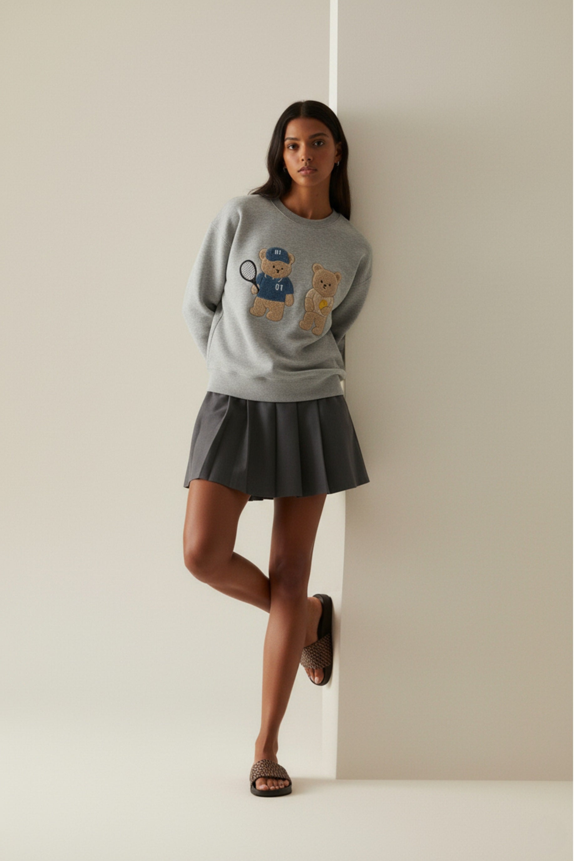 The Amoo Tennis Bear Sweatshirt delivers a balanced blend of texture, whimsy, and everyday comfort. Its chenille motif adds personality without overpowering an outfit, while the soft cotton fleece keeps you comfortable from morning errands to evening meetups. Ideal for fans of vintage-inspired, club-culture aesthetics who want a playful twist on a staple sweatshirt, this piece is ready for campus strolls, weekend errands, or casual brunches. Layer it over a collared shirt for a smart-casual edge or keep it simple with your favorite tee underneath for effortless chic. With its relaxed fit and breathable fabric, it’s a versatile year-round go-to that evolves with your wardrobe.